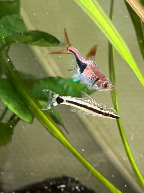 Lot de divers poissons et escargots pour aquarium eau douce comprenant : 7 Rasbora Arlequin Trigo (10 €) 2 Escargots eau douce (neritina parallela zebra) (3 €) 2 Néons (1 €) 1 Corydoras bronze (4 €) 1 poisson laveur de vitre (2 €) 20€ le lot. Disponible sur Coudekerque-branche - 06.50.13.08.43
