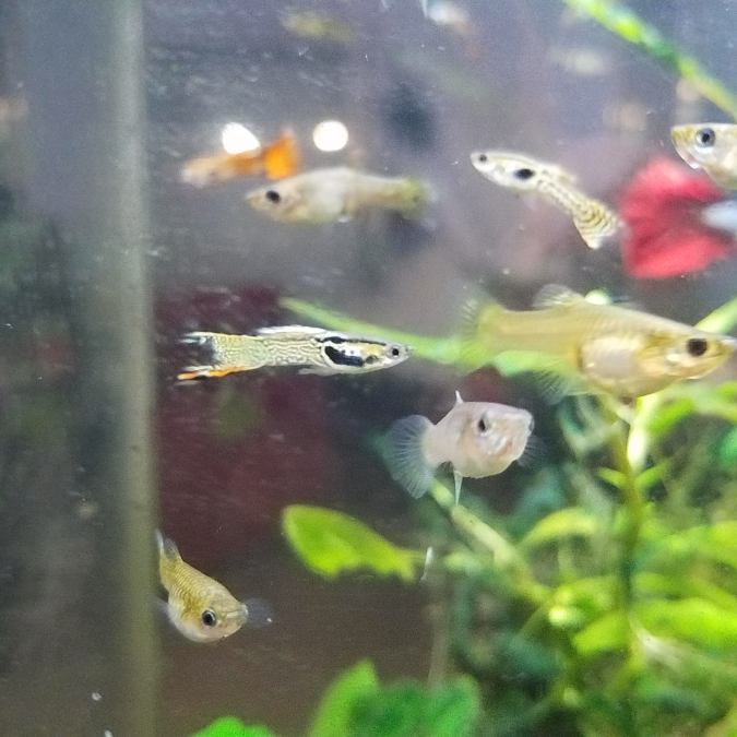 Guppy cobra jaune épée. Souche tres resistante, tenant même en eau non chauffée. Par lot de 10. Echange possible