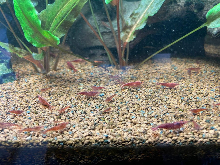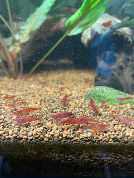 Plusieurs lots de 10 crevettes Red Cherry ( grade Medium ) Elles sont élevés dans un bac de 60L avec plusieurs espèces de poissons ( guppy endler, rasboras émeraude, rasboras nain, corydoras nain, danio choprae ). La cohabitation se passent très bien, elles peuvent donc vivre avec d'autres espèces de poissons. L'eau est a 25°C et un pH autour de 7