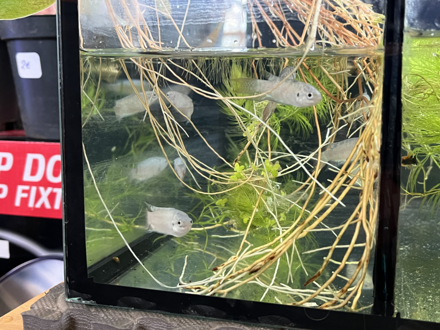 juvéniles macropode opercularis nés cet été 2025 en poubellarium extérieur actuellement en aquarium communautaire (platy guppy) au chaud a(25Cº). sexage trop tôt adorable mangent de tous, ils sont 5 les deux dernières photos sont les parents qui sont en aquarium spécifique car le mâle est très caractériel. poissons aux couleurs magnifiques ! ils sont issus d’un import indonésien il y a plus 5/6 ans chez un particulier qui m’avait vendu un couple. j’ai eu plusieurs portées cependant avec le temps pour éviter un fort taux de consanguinité j’ai rajouter des individus issus d’animalerie.