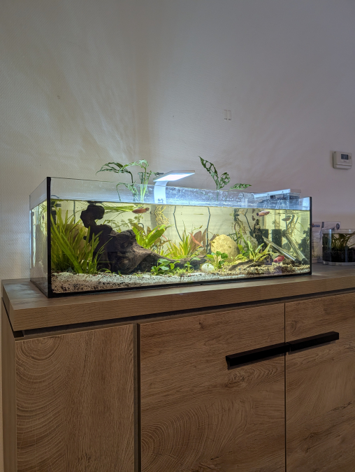 Bonjour je vends de tout, du surplus que je n'utilise plus et qui a ma connaissance fonctionne bien Pompe Filtration externe Wax Épuisette Produits d'entretien Produits de démarrage Engrais Bac reproduction Aquarium Sable Roche Racine Plante Poisson Crevettes