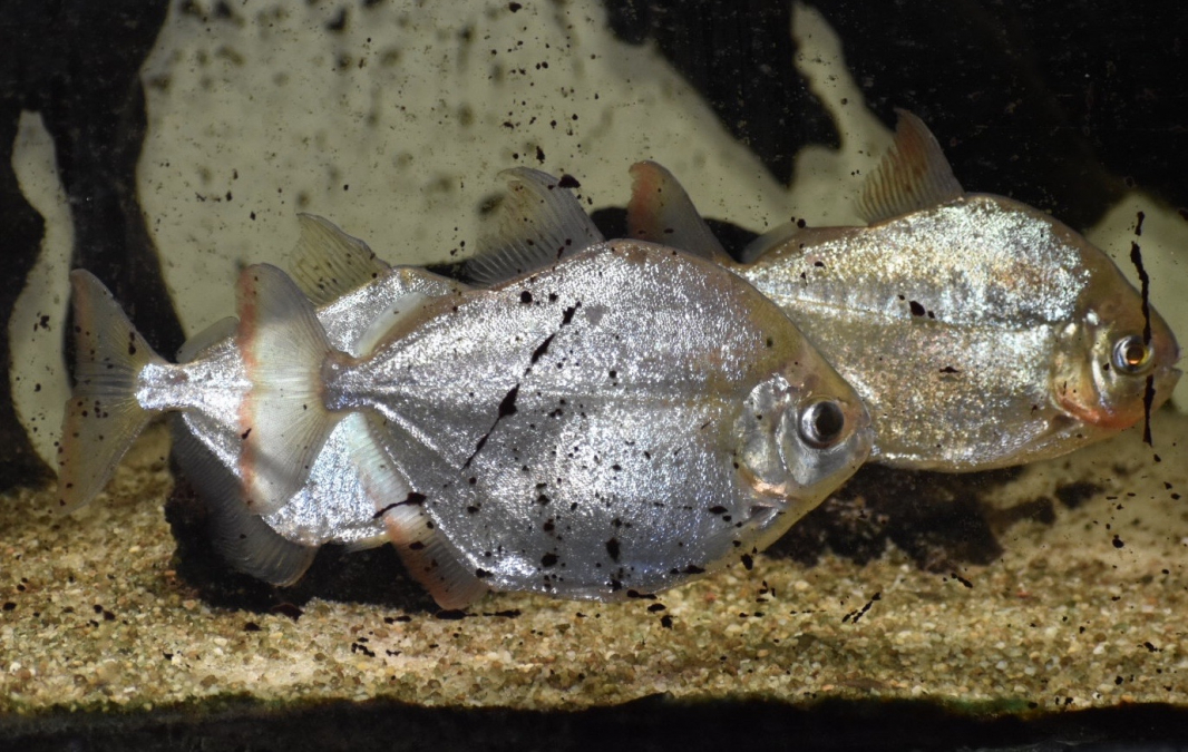 Nous devons nous séparer de notre aquarium de 450 litres et donc, nous cherchons des aquariums d'accueil pour nos pensionnaires. Nous ne cherchons pas forcément à les vendre, le principal pour nous étant que nos protégés soient accueillis dans des bacs suffisamment spacieux chez des personnes qui sauront en prendre soin. Les métynis sont des piranhas herbivores, notre bac est donc sans plantes. On les appelle les Dollar Fish car ils sont de couleur argentés et pailletés. Nous en avons 5 à placer, le plus grand mesure environ 14 cm de long. Contact : 06 88 49 53 99