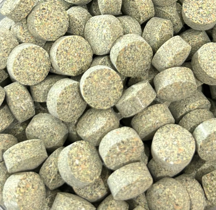 Pot de 50g Très adaptés pour tous les poissons de fond herbivores et pour les crevettes. Forte concentration en Vitamine B12, ce qui contribue à une bonne résistance et à de belles couleurs pour vos poissons. Composition : Produits céréaliers, concentré de protéines végétales, phosphate dicalcique, levure alimentaire, algues spiruline, luzerne, huile végétales, stéarate de magnésium, lécithine, minéraux et compléments vitaminiques. Protéines brutes 30%, matières grasses brutes 5%, fibres brutes 4%, cendres 6,5%, humidité 7% Vitamines /kg : A 20 000UI, D3 1 500UI, E 100mg, C 120mg, B1 10mg, B2 18mg, B6 8mg, B12 35mg Retrouvez tous nos produits sur www.aquadiet.net