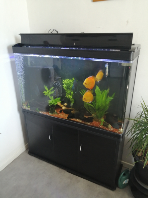 Aquarium eau douce 300 litres +meuble Je vends cet aquarium de 300 litres tout équipé avec son système d'éclairage LED et sa pompe de filtration. - Type de produit : Aquarium - Idéal pour vos poissons - Capacité / Volume : 300 litres - Accessoires inclus : Système d'éclairage à LED, filtre, pompe interne N'hésitez pas à me contacter pour plus d'informations ou de photos.
