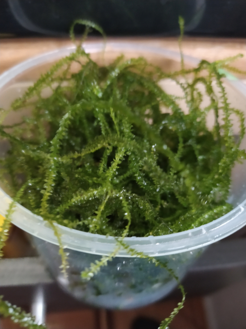 Plante idéale pour donner des cachettes aux alevins étaux crevettes qui y trouvent pas mal de nourriture . Elle peut se fixer sur une pierre ou une souche à l'aide d'un élastique . développement assez rapide. Peu d'entretien. Quantité voir photo