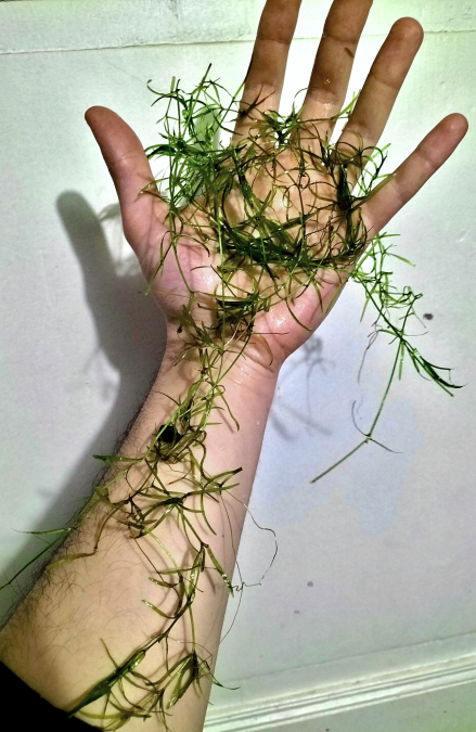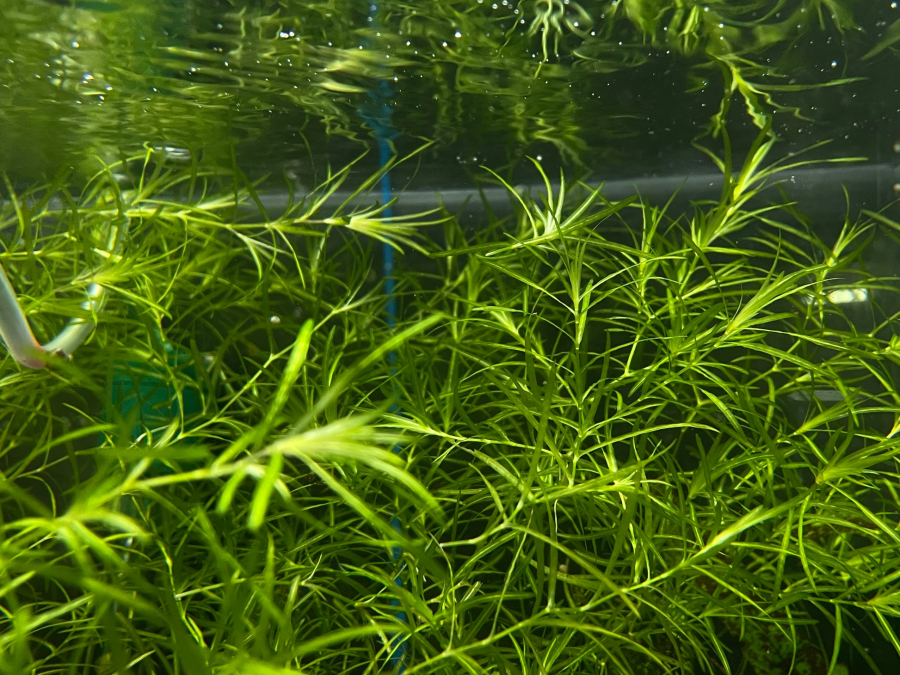 Je propose à la vente cette plante formidable pour vos alevins, microfaune, crevettes, escargots et pour servir de cachette aux poissons timides. Elle est également oxygénant et épure l'eau de votre aquarium ou bassin, grâce à sa capacité à occuper toute la colonne d'eau. Chaque brin peut faire jusqu'à +/- 1 mètre et se ramifier !! Il est très facile d'en retirer de l'aquarium (contrairement à certaines mousses...) Elle peut être laissé flottante, accrochée ou lestée a un caillou ou bien plantée. Elle supporte bien le froid pour un aquarium non chauffé, elle devient très cassante à forte température. Pousse rapidement avec ou sans fertilisation ou co2. Eau douce, neutre ou dure (elle prospère chez moi dans à des pH allant de 6 à 8.5). Forte ou faible luminosité. Vendu en portions. Les brins sont naturellement relativement cassants. Vous pouvez les tailler en gardant quelques feuilles. Chaque bouture va alors produire des racines et d'autres tiges. Dans la nature elle utilise ce procédé pour produire de grands buissons très denses, véritables refuges de biodiversité !