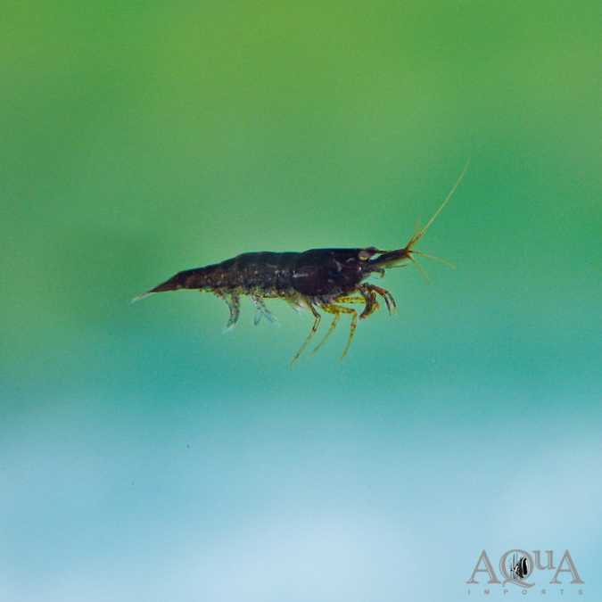 Crevettes élevées en eau robinet avec conditionneur, 2 a 3 cm . couleur chocolat très foncé (presque noir). 9 euros les 5, A venir chercher sur place.