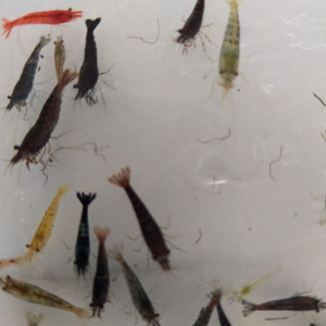 Bonjour, je propose des crevettes Neocaridina davidi déclassées, issues de mes sélections de Blue Velvet et de Red Sakura. Elles sont de couleurs variées, dominante bleue, rouge, brun, translucide, etc. 0,20€ l'unité, 2€ le lot de 10