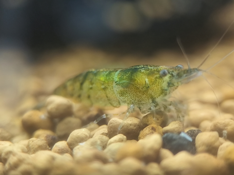 NeoCaridina green tiger, souche venant de chez Nico's shrimp. . Plus ou moins verte et bien tigré, magnifique avec un bel eclairage