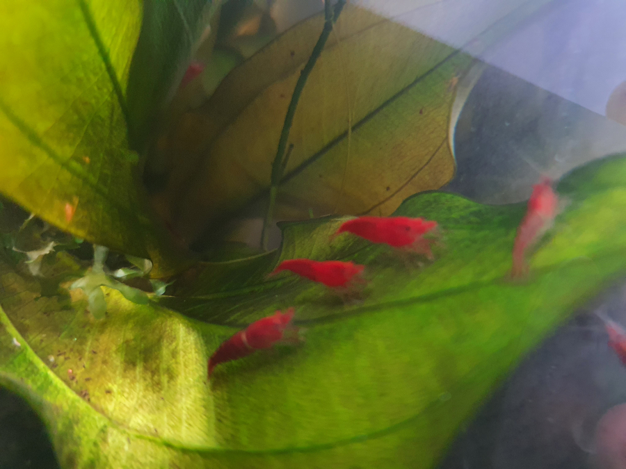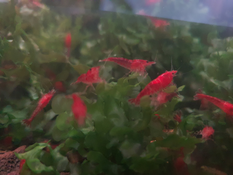 Crevettes d'eau douces issues de ma reproduction. Maintient très facile et reproduction rapide. Elevage sur eau de conduite ou eau d'auvergne. Taille adule: 3-4 cm Parfaites en détritivores, elles vont inlassablement nettoyer le bac. Elles sont adaptées aux petits aquariums Possibilité de maintient sans chauffage. Je dispose de deux "morphs", un qui sera "tigré" et un qui sera complètement rouge (on est plus vers de la sakura globalement que de la red cherry). Tarif 1e la crevette taille 10-25mm lot de 10: 10 euros Me prévenir si besoin d'acclimatation particulière..
