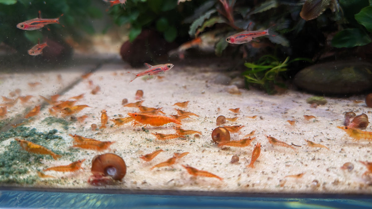 Bonjour, Je vends des crevettes néocaridina orange fire. J'en déclasse régulièrement pour garder une belle souche (la crevette incolore à l'arrière-plan sur la photo est une Japonica). 1€ pièce. Remise en main propre à Massy-Palaiseau ou sur le plateau de Saclay, éventuellement ailleurs sur le RER B.