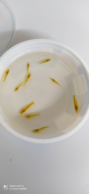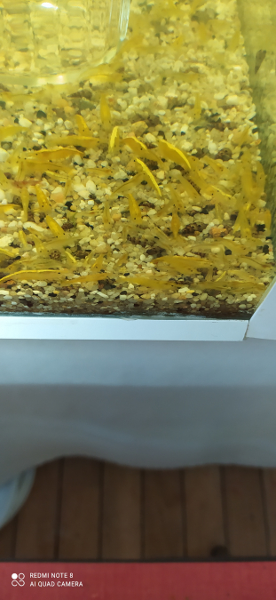 Je propose de crevettes yellow néon. Elle vive dans l'eau du robinet, même très calcaire, sans sol spécifique. Conviennent avec des petits poissons comme les Guppies ou des ancistrus Prix 1,5€ pièce , 10€ les 8 , 20€ les 20