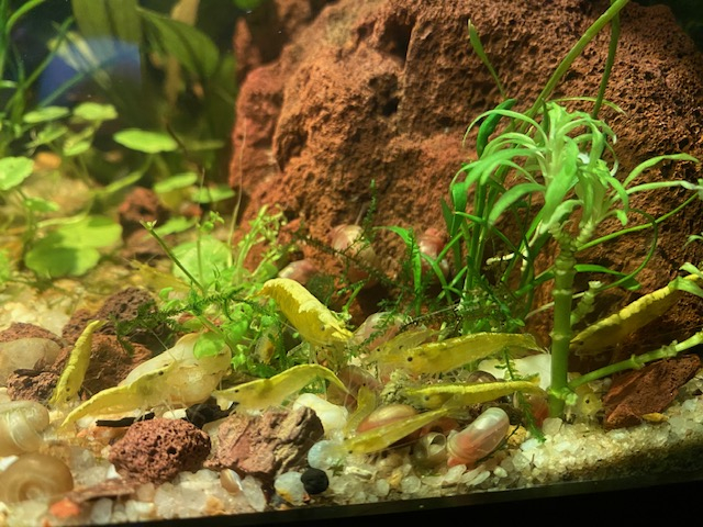 Crevettes Néocaridina, couleur jaune néon. Très bonne souche, j'ai eu beaucoup de reproduction et elles sont toutes d'une belle couleur jaune avec la ligne jaune vif le long du dos. Pas d'envoi, remise en mains propres uniquement pour le vivant. J'ai aussi régulièrement du surplus de plantes, n'hésitez pas à demander par message.