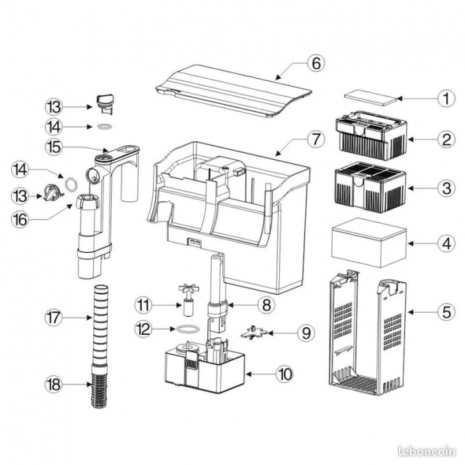 • Filtre suspendu cascade CBG-500 pour aquariums • Capacité de pompe 500 l/h, avec UVC 5 W • Tissu filtrant, charbon actif, boules bio • Débit d’eau réglable, écumeur inclus • Pour aquarium de taille 38–115 litres • Consommation énergétique de seulement 5 W