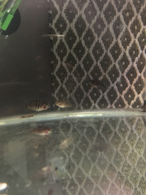 Je vends des cichlidés nigrofasciatas issus de la reproduction dans mon bac, afin d'éviter une surpopulation. 2€ par poisson pour les alevins (3 mois), j'en ai une quinzaine, ils font environ 2cm. 12€ pour le couple reproducteur, environ 10cm. La reproduction s'est faite en bac communautaire en présence de poissons beaucoup plus gros (dont un oscar), donc ce sont des poissons robustes, autant pour les parents que pour les enfants.