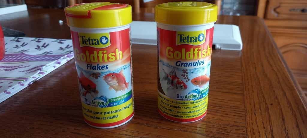 Vend deux boîtes de nourriture pour poissons rouges Prix : 8€ les 2 boîtes TEL 0780429505