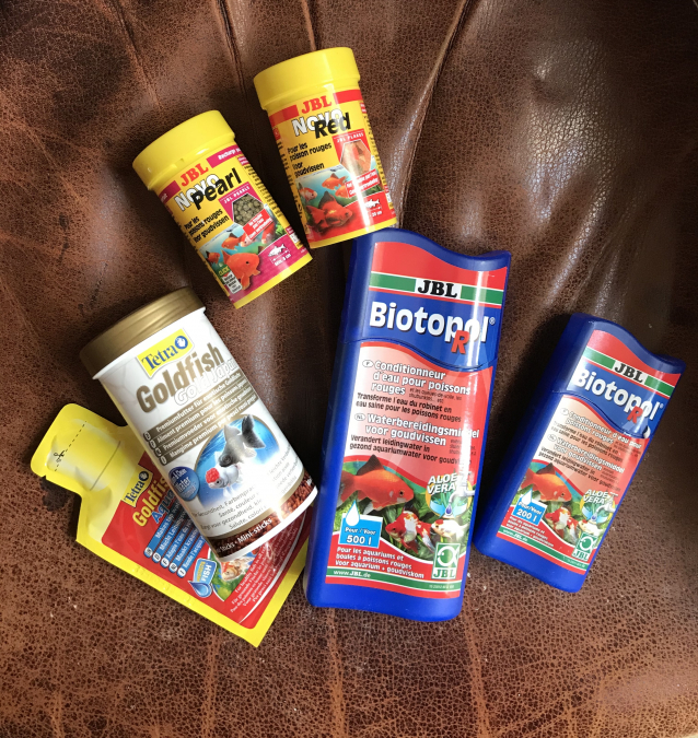 Bonjour, Je vends les produits suivants neufs : Conditionneur d'eau Biotopol R JBL en 250ml. Novo Red, nourriture pour poisson(s) rouge en 100ml Novo Pearl, nourriture pour poisson(s) rouge en 100ml et donne en cas d'achat (peu utilisé) Conditionneur d'eau Biotopol R JBL en 100ml. Goldfish (Gold Japan), nourriture pour poisson(s) rouge(s) de Tetra