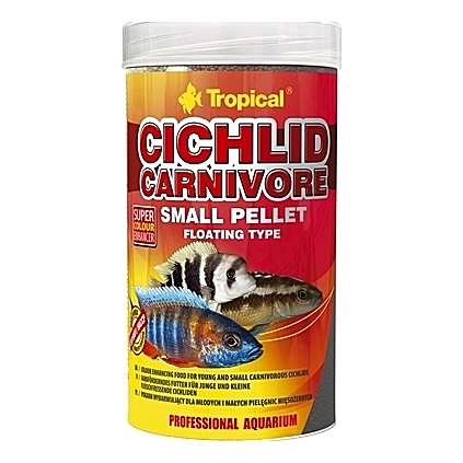 Nourriture riche en protéines avec astaxanthine pour cichlidés carnivores jeunes ou de petite taille.