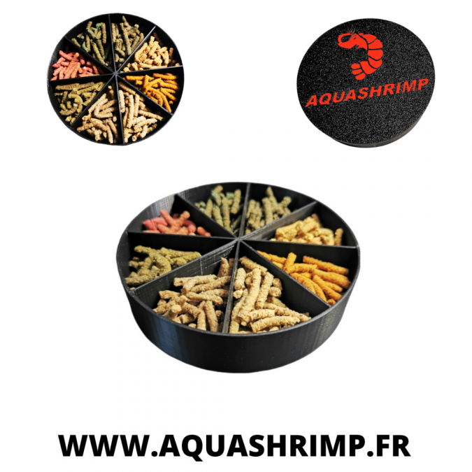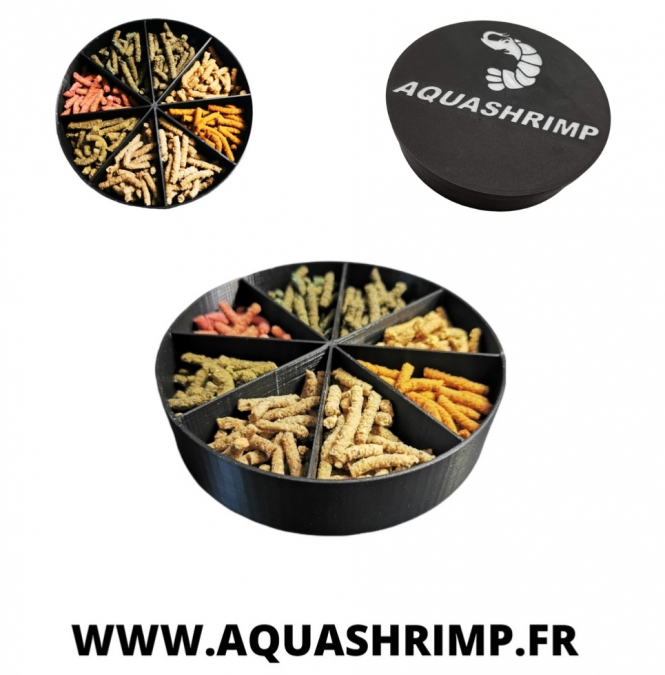 Boîte à pellets aquashrimp Idéal pour ranger vos pellets sur une semaine. Boîte pratique et rangement facile pour vos crevettes. Matière en PLA noir ou rouge à choisir. Taille : 13,5 cm diamètre par 3 cm de hauteur