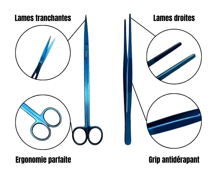 Le pack essentiel HYLAS rassemble les outils indispensables pour l’entretien précis d’un aquarium planté. Il comprend une pince de précision et une paire de ciseaux droits, fabriqués en acier inoxydable japonais avec un revêtement bleu métallique durable. Conçus pour les aquariophiles exigeants, ces outils offrent une prise en main ergonomique, des lames droites tranchantes et une excellente résistance à l’eau. Idéal pour la taille des plantes gazonnantes, des tiges et les zones délicates. Le pack est disponible en différentes tailles afin de s’adapter à tous les volumes d’aquarium et à vos habitudes d’entretien. Un ensemble fiable, précis et élégant pour un travail net et maîtrisé. --> Contactez-moi pour davantage d'informations