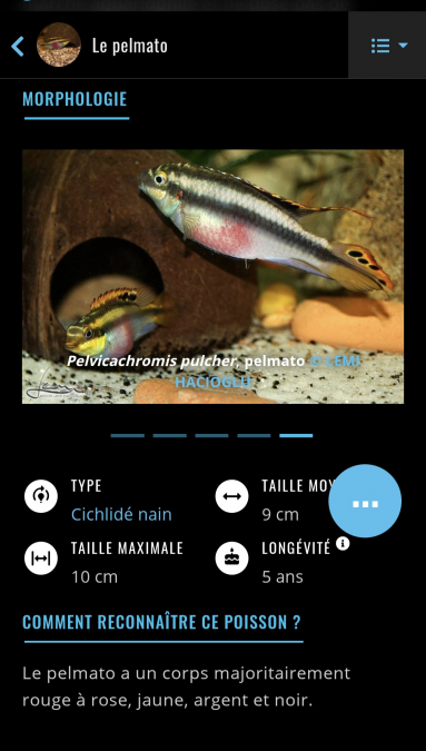 ⁷ Bonjour, Je vend jeune pelmato mal et femelle, poissons avec un très bon comportement super à regarder grandir dans un aquarium. Le père et la mère sont de qualité et le couleurs sont bien présentes. A vendre en couples ou seul . A venir chercher à la maison . 44250