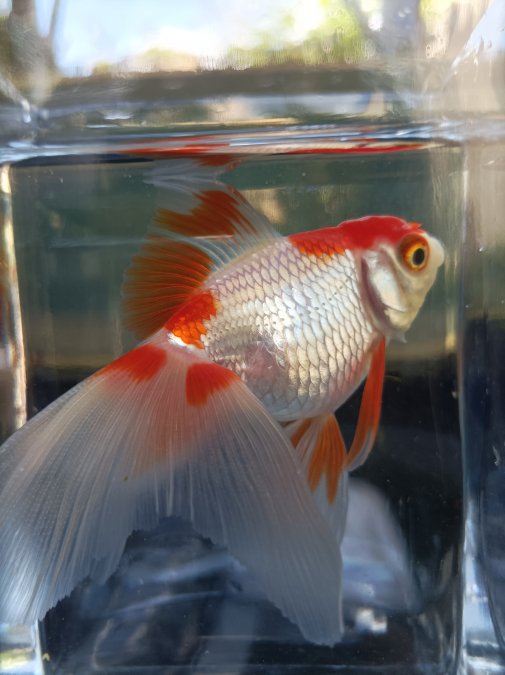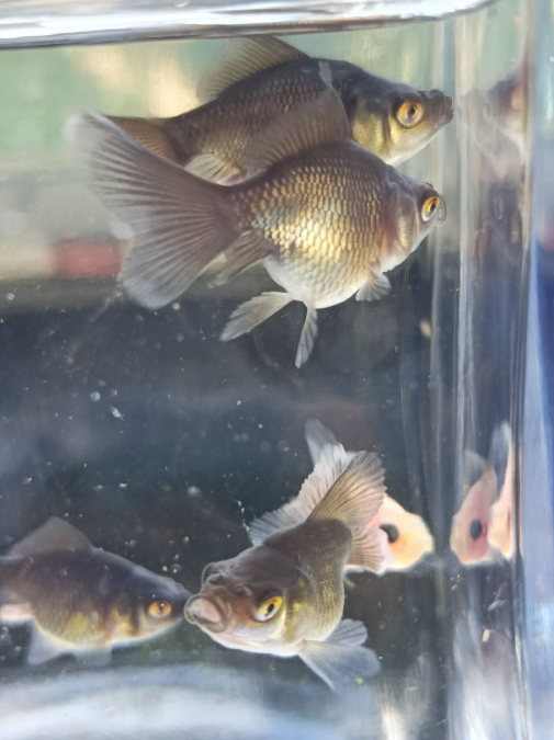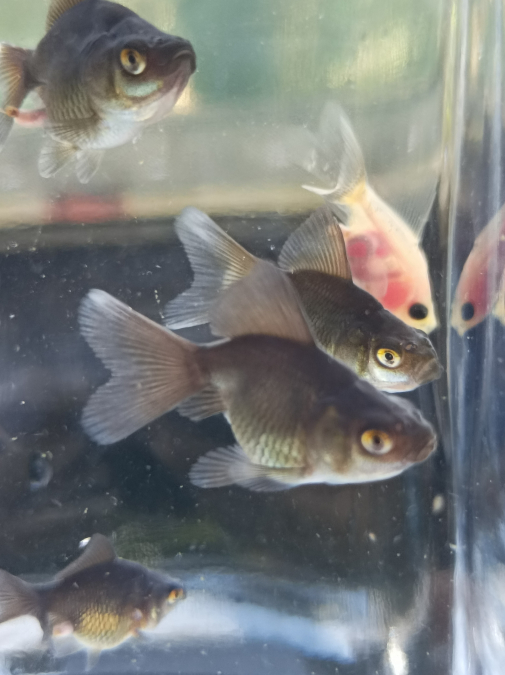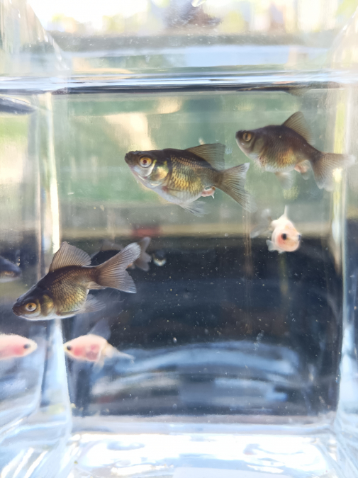 Très beaux petits poissons rouges de sélection, de la variété queue de voile; nés en fin juin 2024 en France; poissons solides et magnifiques! (Leur maman est le grand poisson rouge-blanche (non en vente))