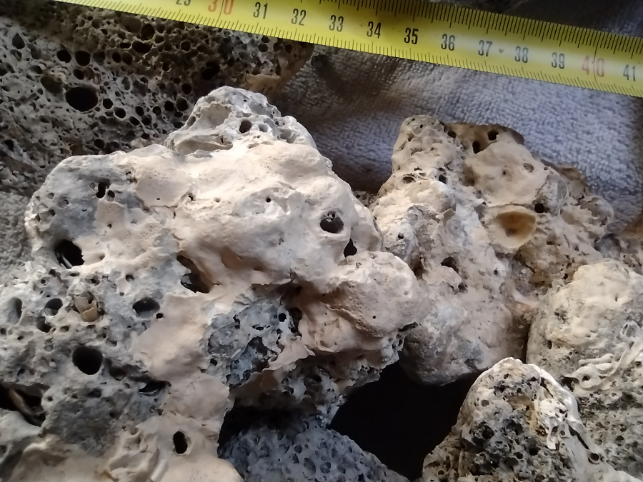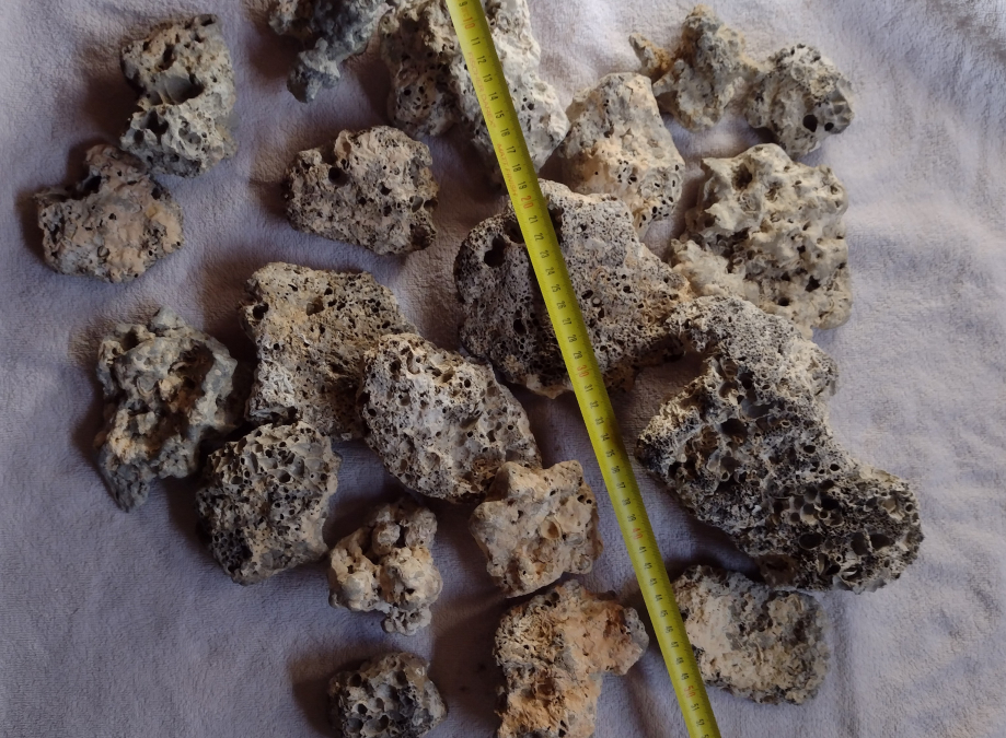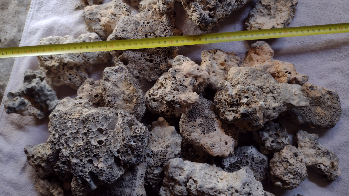 Pierres pour aquarium récifal ou bac eau de mer. Lots de 6.8kg pour 32€ Ou 5€ le kg au détail Forte porosité (micro et macro) avec incrustations coraliennes en surface. Poids des pierres : de 130g à 800g pour les plus grosses. Photos détaillées à la demande. Livraison gratuite et sur RdV possible pour le lot complet, une fois par semaine, sur Morestel, Genas ou Saint Martin d'hères.