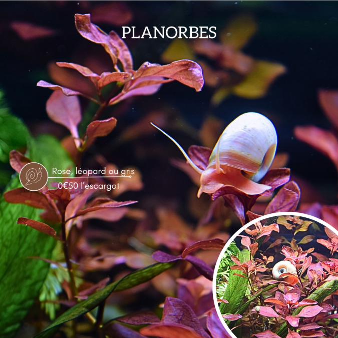 Je vends plusieurs couleurs de planorbes, ils n'ont pas été isolé donc pas de sélection de couleur fixe. en mélange il y a des roses, des bleus/gris, des léopards, des oranges. Je ne fais pas d'envoie, disponible sur cressensac/sarrazac au plaisir de vous répondre