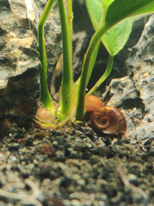 Nombreux planorbes bruns