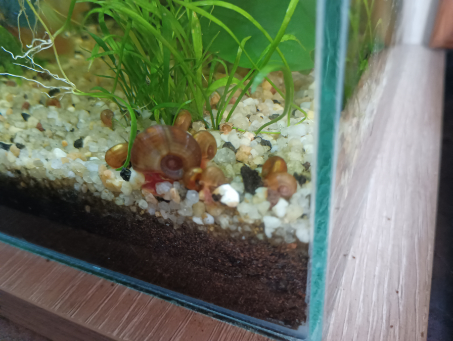 Bébés planorbes dorés/pieds rouge à échanger contre escargots assassins et/ou crevettes d'eau douce. Ouverte à la discussion ☺️