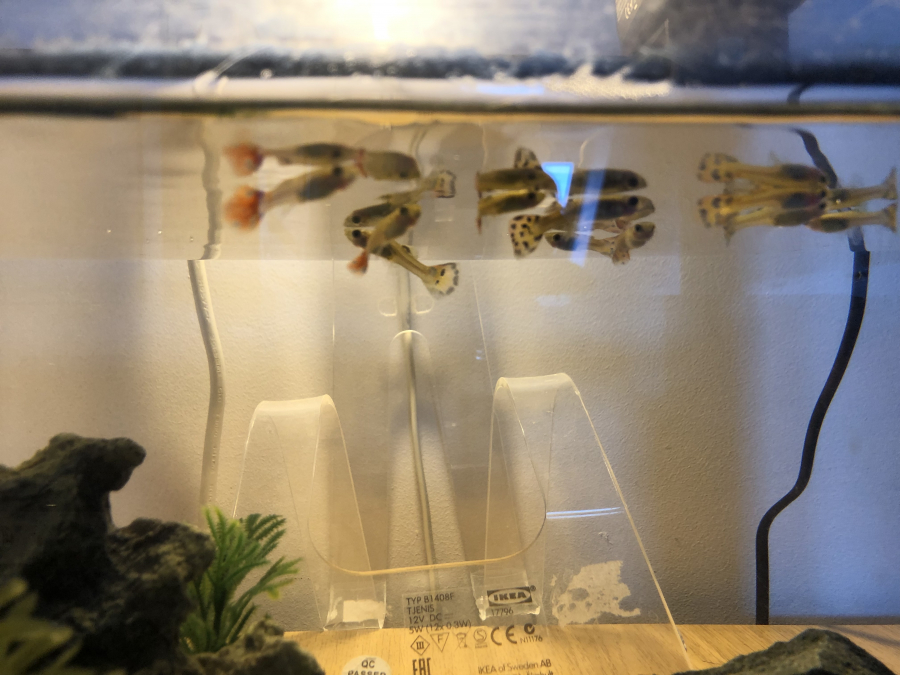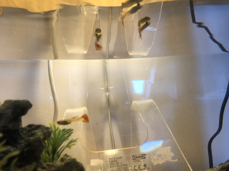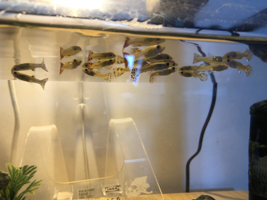 Il y a 16 guppy , il vivent très bien nourris chaque jour à la température qu’il faut en très bonne santé