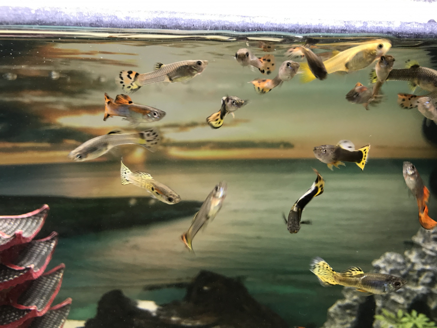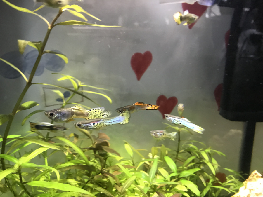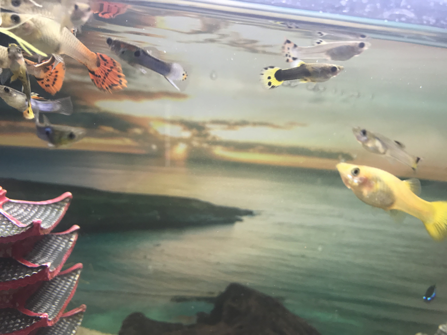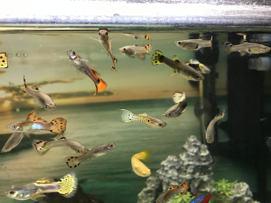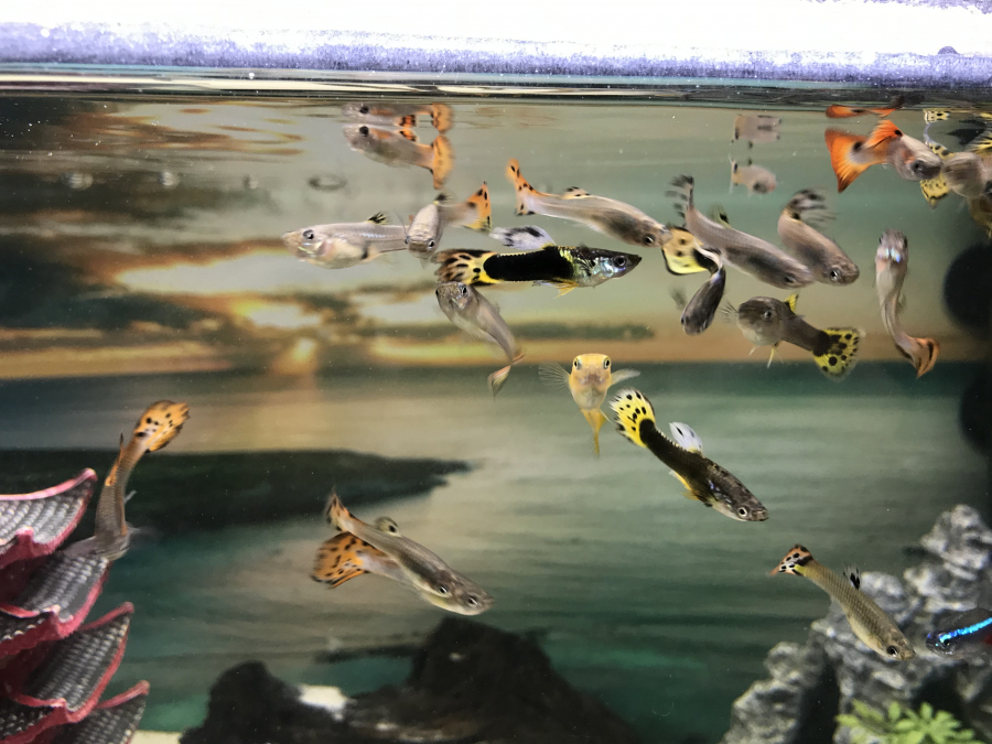 Poissons guppys d’environ 2 mois ! Poissons vif, bonne santé et bonne forme ! Poisons de couleur jeune , noire avec Un derrière orange! Plusieurs couleurs !