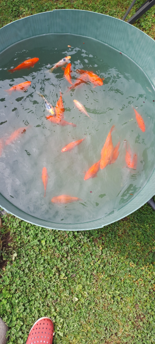 Bonjour je vends poisson rouge car surplus du bassin Merci bien