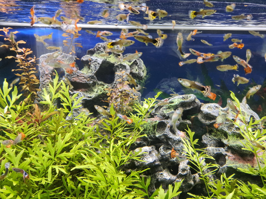Pour éviter la surpopulation, je vends des poissons guppys 1 euro par individu.