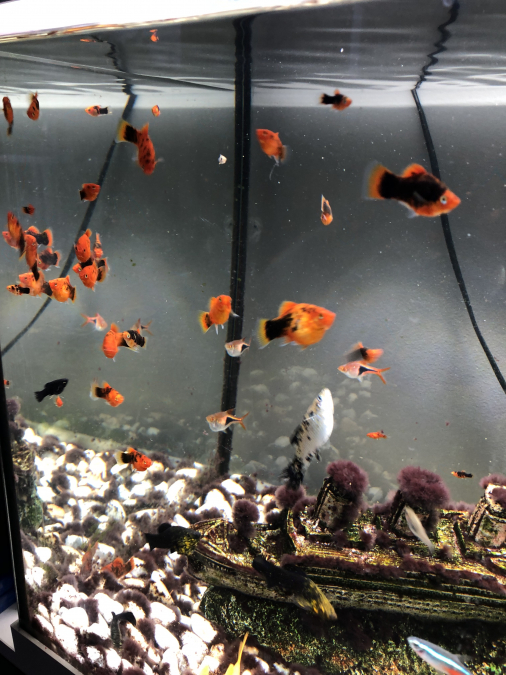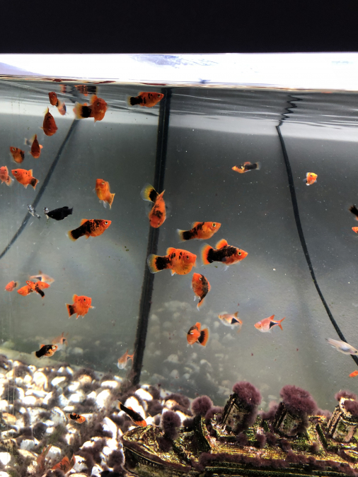 Vend ou échange poisson molly noir et jaune ou platy orange et noir