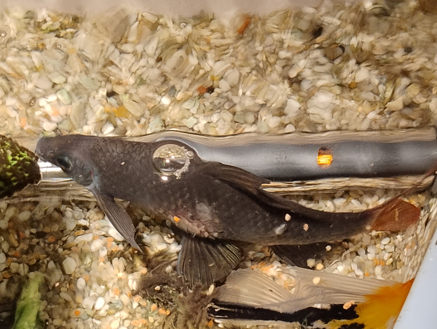 Présent dans l'aquarium d'occasion de 180l.. il est tout seul et cherche un bac plus grand...