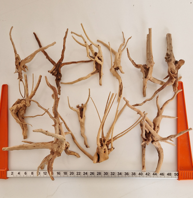 Lot de 11 Racines Naturelles Treetrunk ou Spiderwood(neuf, jamais utilisé) 3 pièces d’environ 30 cm et 8 pièces d’environ 20 cm.Livraison GRATUITE en point relais, Colissimo à domicile : +5€ supplémentaires.