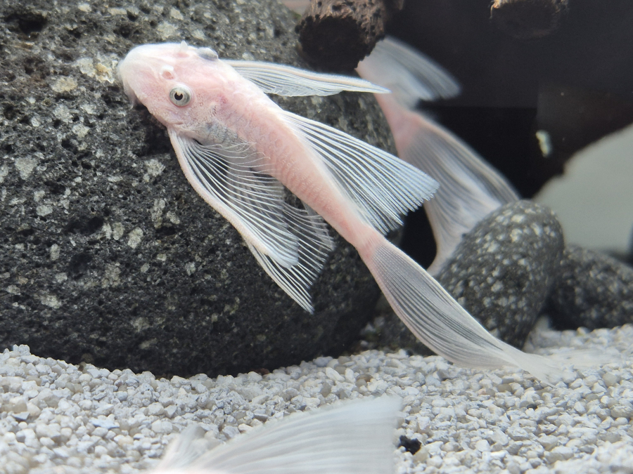 A vendre L144 ancistrus Snow White (blanche neige) voile (longfin) yeux bleus nés dans mon bac de dex parents snow white longfin. Belle souche. Les snow white voilés sont encore très rare en France. Ils font actuellement 5/6cm, nourris exclusivement aux légumes frais depuis leur naissance pour leur assurer une bonne croissance. Ils sont actuellement dans un 240l et cohabitent sans problème avec neocaridina davidi et autres petits poissons. Il vous faudra un bac de 100l/120l minimum pour maintenir 2 ancistrus adultes. 30€/ unité où 50€ les deux. Il me reste 6 individus. NON SEXABLES PAS D'ENVOIS Annonce en ligne = dispo