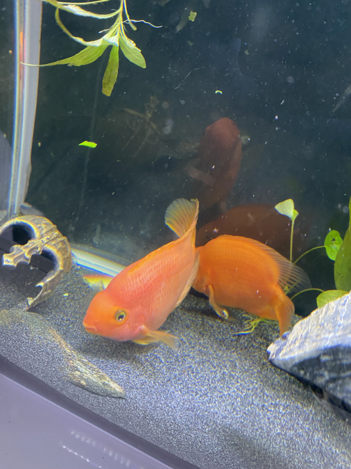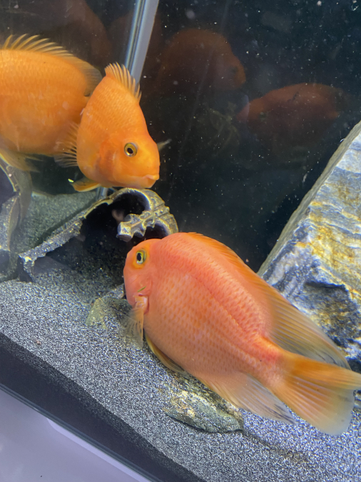 Bonjour, je me sépare de mes deux rep parrot (cichlasoma sp blood red parrot) Pour cause de changement de population. Il y en a un orangé de 10 cm et l’autre plus rosé de 15 cm. Je fournis avec leur granulés qui permet un bon maintien des couleur. Pour plus d’information n’hésitez pas.