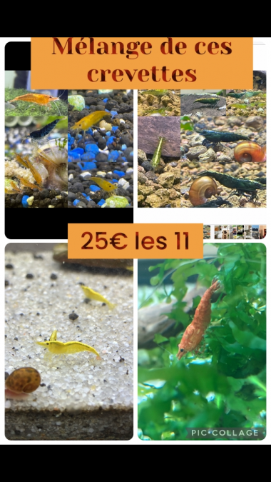 Je vous propose pour donner de la vie et de la couleur en vous proposant un mélange de couleurs Je précise bien que chez moi, chaque espèce ou chaque couleur de Neo Sont seuls en bac spécifique. Ainsi même si vous prenez aujourd’hui un mix de couleurs, elles ne deviendront pas grise d’ici six mois ou un an au minimum 18 mois, voire deux ans avant que certaines commencent à perdre un peu de couleurs. Je pratique l’accord depuis plus de 30 ans et les Crevettes depuis plus de 15 ans donc vous pouvez me croire. Le lot comprend :11 crevettes 4 sakura orange. 2 jaunes. 4 Green jade. Et 1 bleu velvet. Si votre aquarium n’est pas encore cyclé j’ai des bactéries vivante. ——-Le lot de 11=30€——//// Pour les remises en main propre j’offre de la rare moss où Pelliound moss. Varech. Et échantillon de nourriture pour qu’elles s’habituent doucement à une autre nourriture Nanterre La Défense Numéro :☎️?☎️ 07 69 55 93 75