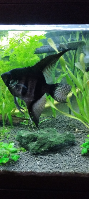 Je donne mon scalaire, il m'a été offert il y a quelque temps. Depuis il a bien grandi est mon aquarium est devenu étroit. Il est âgé de 4 ans.