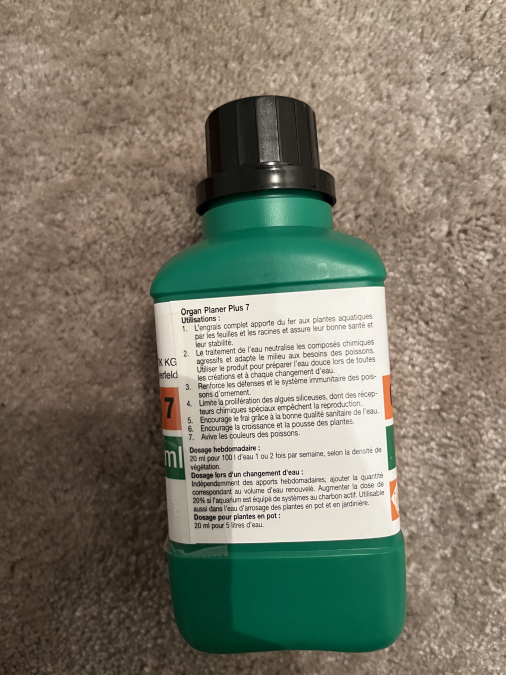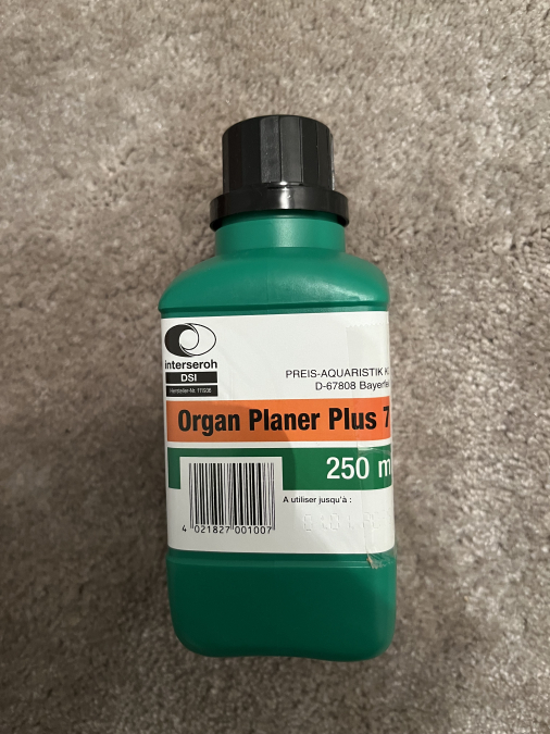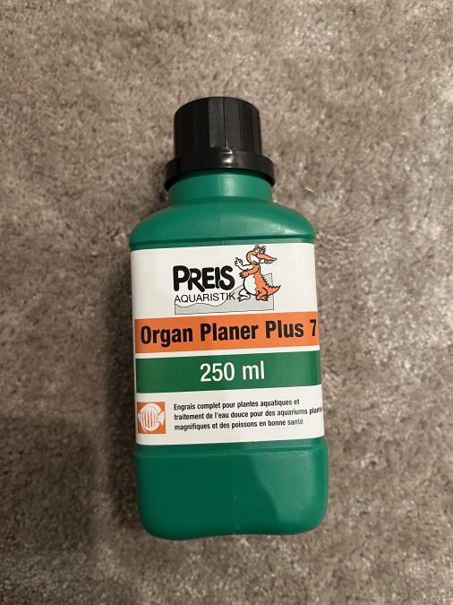 ORGAN PLANER PLUS 7 250ML est un engrais liquide pour aquarium d'eau douce. Il agit de 7 façons différentes sur l'eau. Il permet de conditionner l'eau du robinet, de nourrir les plantes, de rétablir les poissons blessés et favorise l'élevage des alvins. ORGAN PLANER PLUS 7 250ML couplé avec CHARBON PREIS KOHLE favorise le développement du plancton animal et végétal et réduira l'apparition d'algues indésirables. 40 ml pour 200 l d'eau 1/semaine. 2 articles achetés = 15% de remise >3 articles achetés= 20% de remise >4 articles achetés= 20% de remise plus livraison gratuite