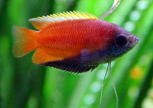 2 mâles Trichogaster Chuna ou gourami miel. 1 rouge et 1 jaune.
