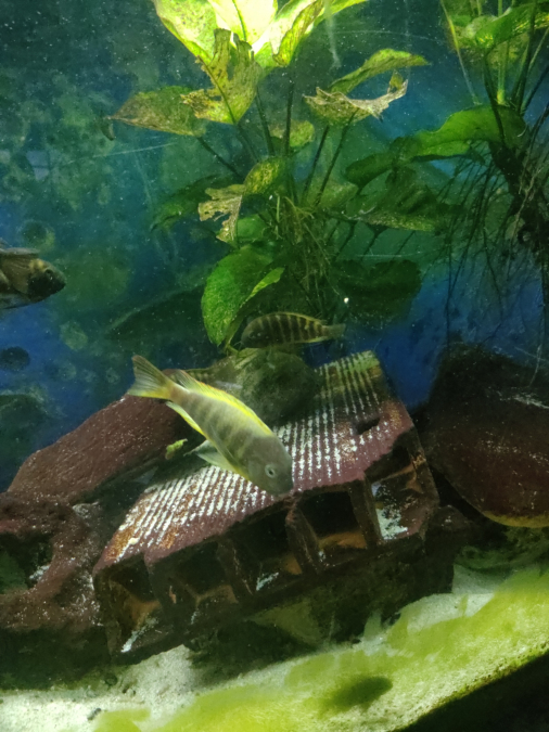 Le plus cool et le plus facile des tropheus que j'ai maintenu jusqu'à maintenant, comparable au duboisi pour le caractère. C'est pas non plus un agneau hein, maintenance tropheus obligatoire (en groupe conséquent, avec de la place et quelques cachettes). Dimorphisme sexuel sympa, les mâles arborent la fameuse "selle de cheval" jaune sur le dos, les femelles sont le plus souvent rayées jaune et noir comme les petits qui sont mignons. On peut faire un partie de pêche dans le bac d'ensemble, les repros d'enchaînent. Origine Cichliden Stadel (F ?)