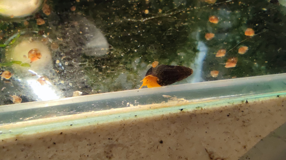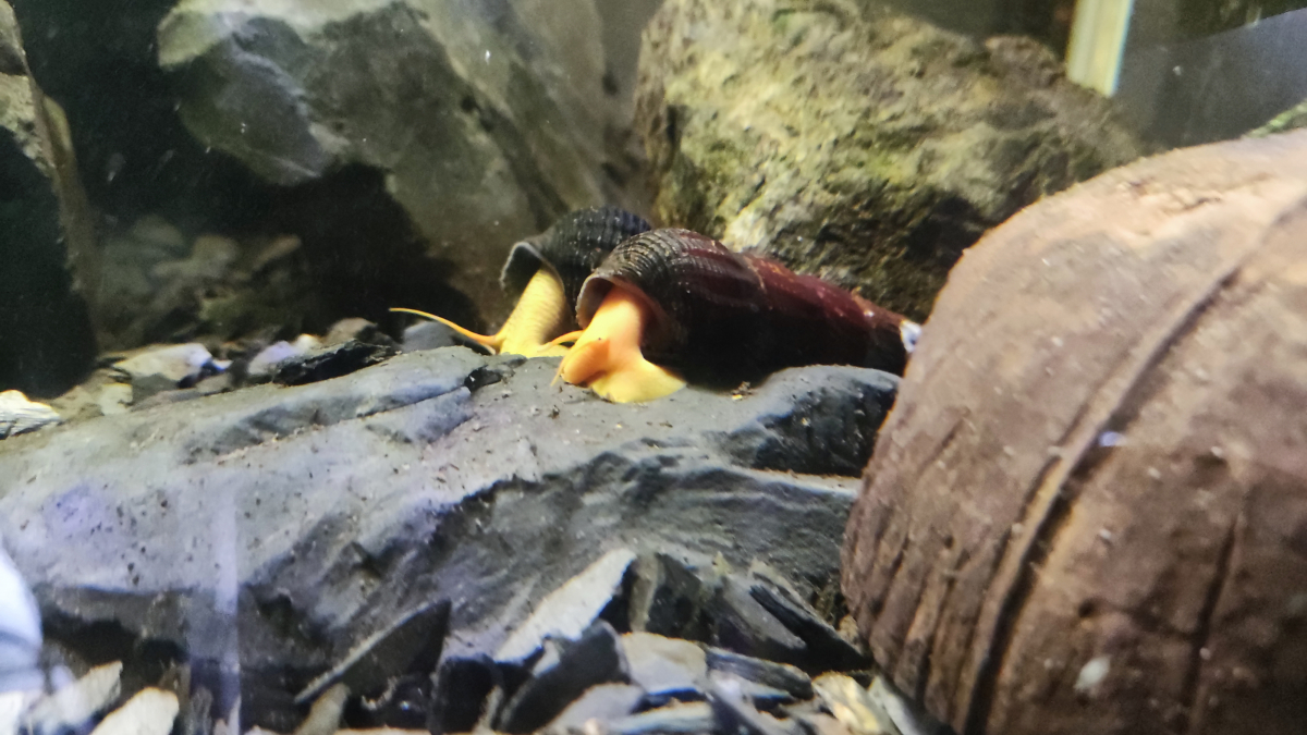 Vends petits tylomelania sp orange. Photo 1: un des petits Photo 2: les adultes Ils feront entre 1 et 2 cm à la vente. Une fois adulte ils en feront 8cm. Escargot sympathique, ne mange pas les plantes, cohabite parfaitement avec les crevettes et les poissons. Il lui faut une température de minimum 24°C. 4€ le petit escargot Trop fragile pour un envoi à cause des températures.