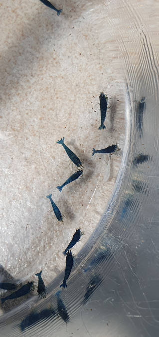 J'ai fait l'acquisition de crevettes iced blue (via Garnelio) sauf que j'avais annulé la commande, ils m'ont bien annulé la commande, mais je les ai malheureusement quand même reçu !!! Problème je ne peux pas du tout m'en occuper. Il y en a 14 qui font environ 1cm, j'aimerai bien les vendre en lot 50€ (On m'a dit qu'elles ressemblaient plus à des blue bolt) Je les ai reçu aujourd'hui ! (La photo verte provient du site ) Je peux me déplacer 67 !