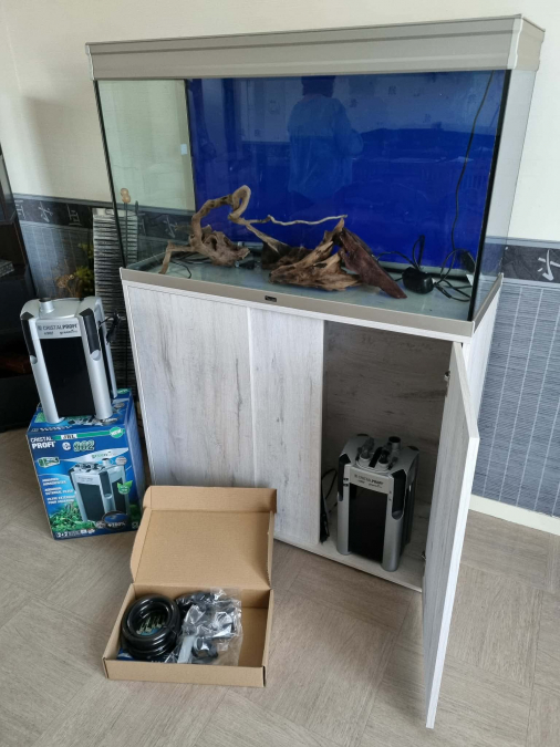 Je vends un aquarium de 200 litres avec son meuble, 2 pompes JBL pour aquarium 300 litres, résistance et bulleur et produits d'entretien (indissociable). Remis en main propre, pas de livraison. En liquide ou virement bancaire.