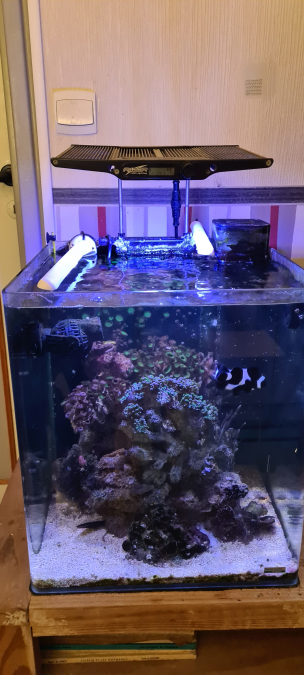 Je vend tout petit prix cause déménagement mon aquarium Dénerlé avec tout le matériel (rampe Maxspect r420 + éclairage Tunz, écumeur Tunz, pompe, chauffage, divers...) et le vivant (Pierres vivantes ,couple de clowns black XL, Palythoa vert, Richordéa...). A récupérer sur place.