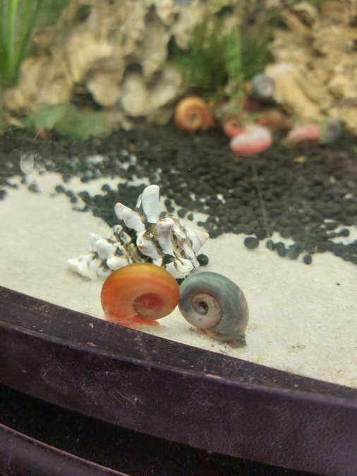 Vend escargots d'eau ( planorbs ) suite à une surpopulation . Couleur : Rose Bleu Brune Prix : 2€ l'unité Pour plus d'information envoyez un mail aux dauphincd@orange.fr