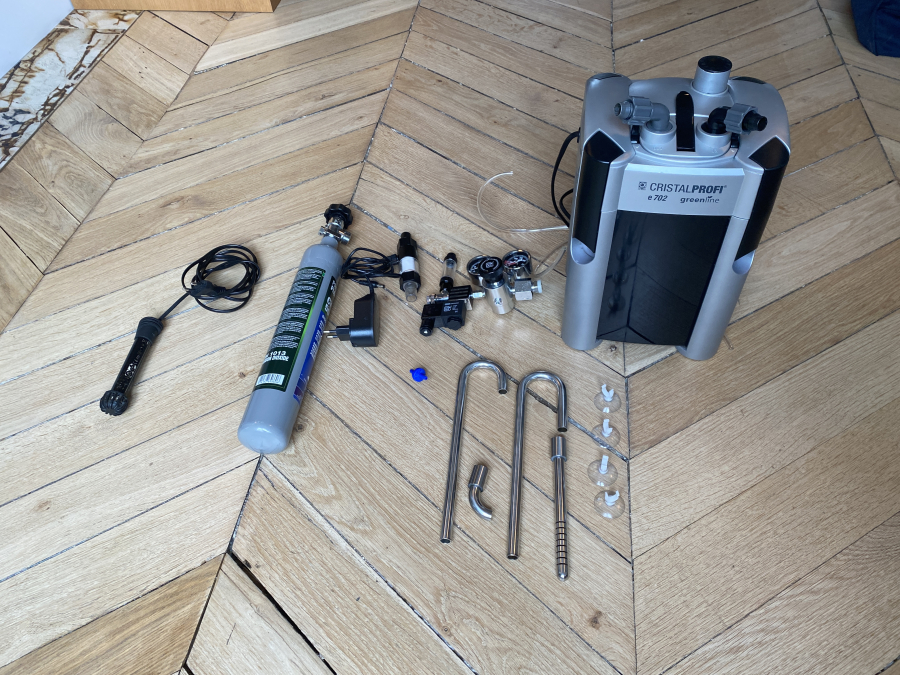 A vendre suite déménagement ensemble filtration en très bon état : - Pompe Cristal Profil E702 valeur 109€ - CO2 PRO-SE valeur 119€ - Bouteille CO2 rechargeable valeur 79€ - Cannes inox offertes Le tout vendu 160€